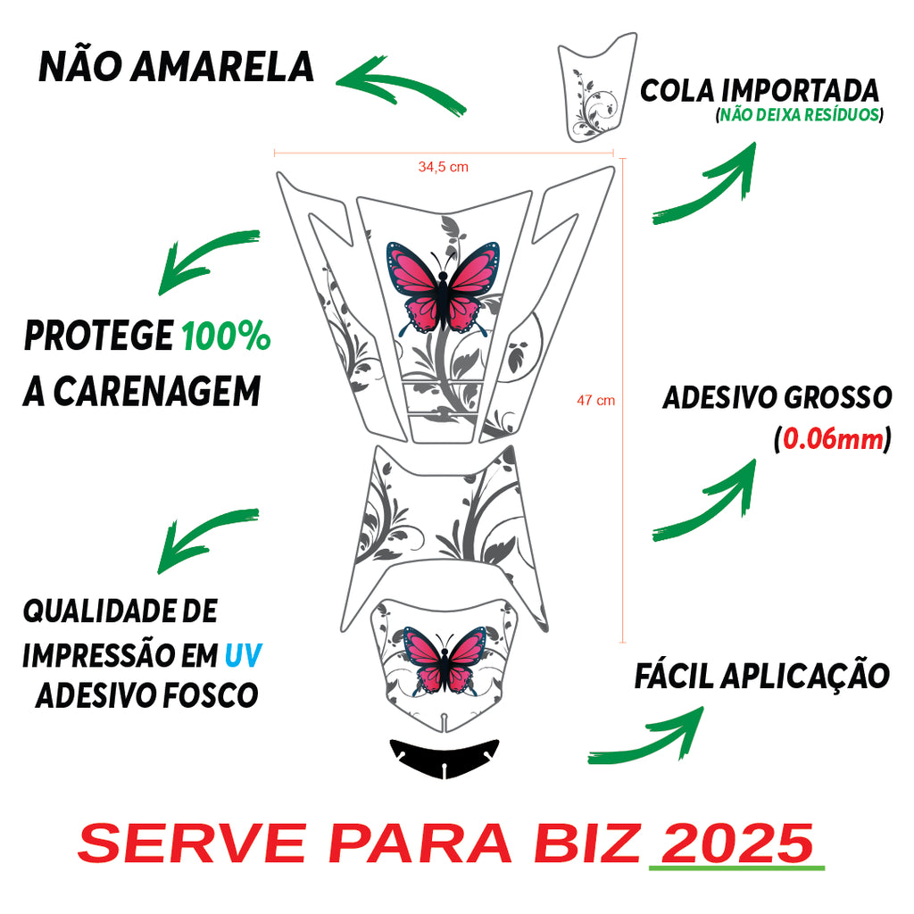 ADESIVO PROTETOR DA BIZ BORBOLETA BRANCA FOSCO 2025 (LEIAM A DESCRIÇÃO)